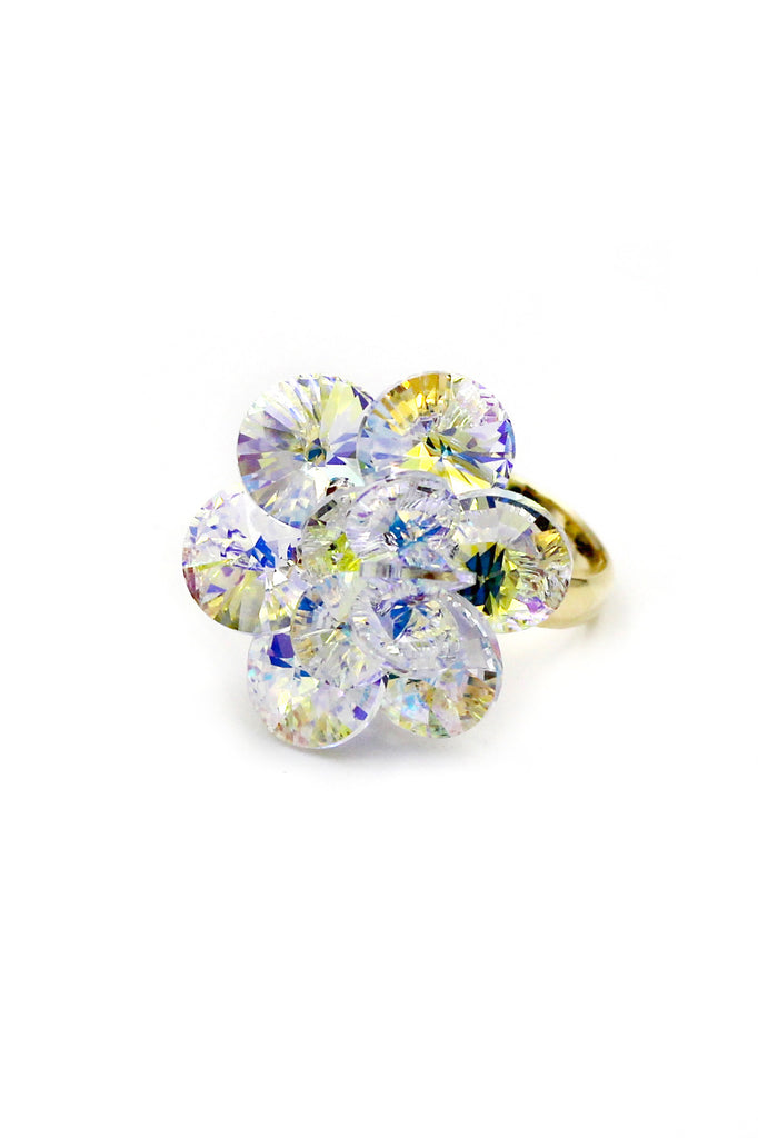 Yellow Crystal Flower Gold Ring