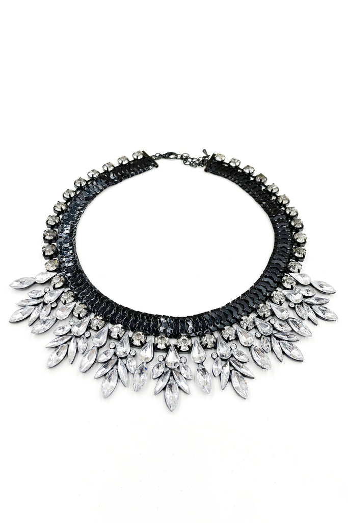 elegant black crystal flower necklace