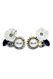 simple rosette crystal and pearl earrings