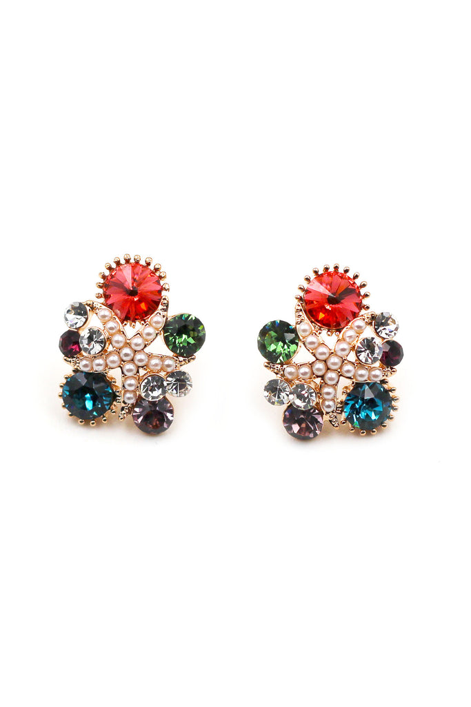 Fashion Colorful starfish crystal small pearl earrings
