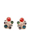 stylish crystal oval and flower earrings