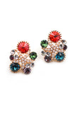 colorful square crystal golden earrings