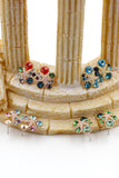lovely flower and cubic gold rim earrings