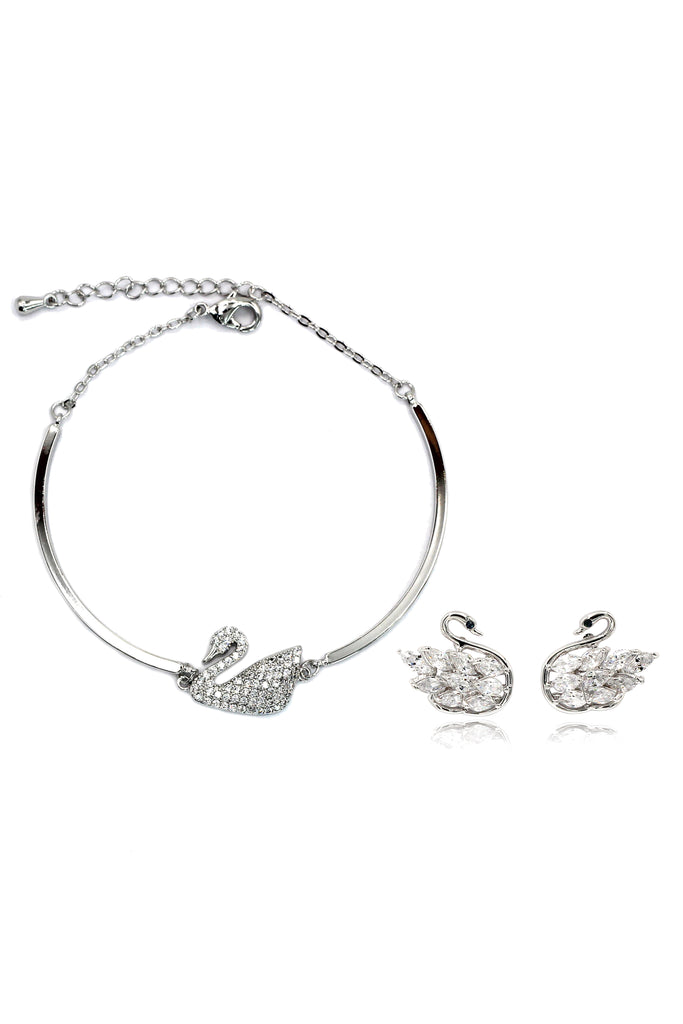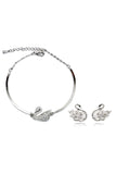 elegant crystal swan bracelet earrings set