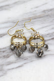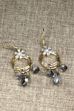 gold crystal flower tassel earrings