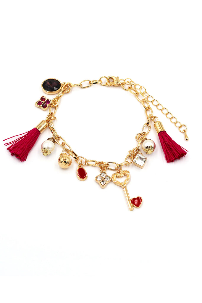 fashion heart-shaped key and tassel golden bracelet