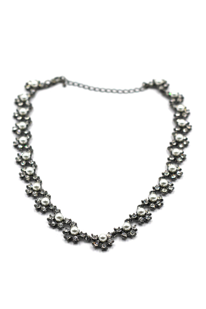Classic pearl and crystal silver necklace