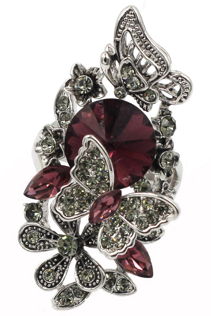 elegant crystal butterfly and flower ring