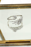 Elegant crystal cross open silver ring