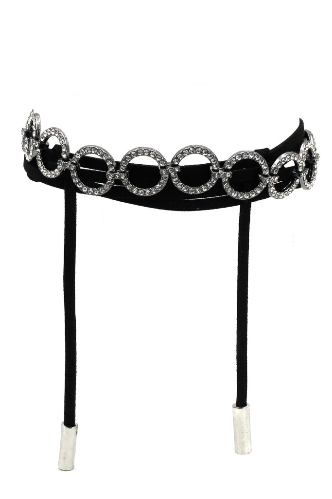 diamond crystal leather choker