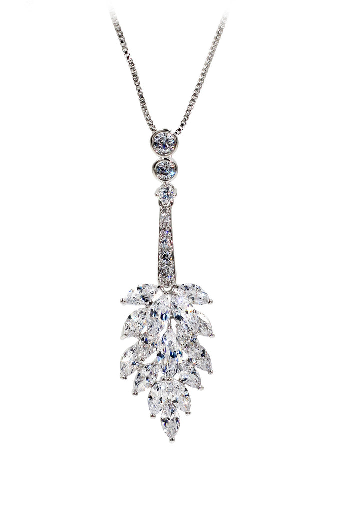 elegant square crystal pendant silver necklace