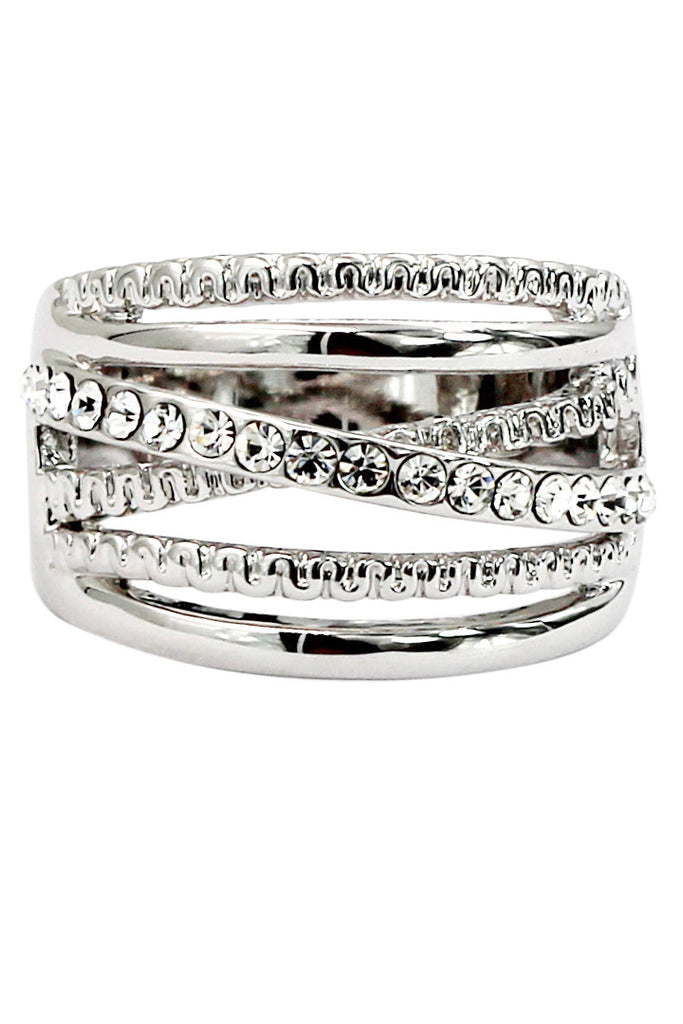 fashion crystal width silver ring