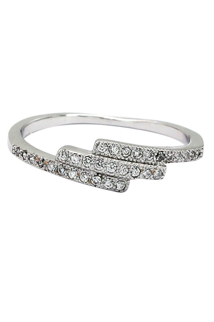 Elegant crystal cross open silver ring