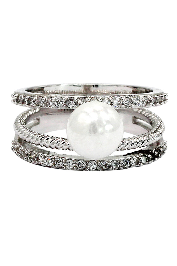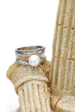 fashion loop small crystal and peal silver ring