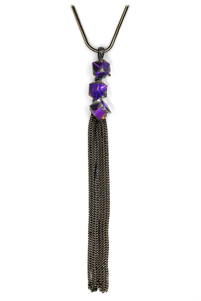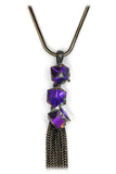 fashion square purple crystal tassel necklace