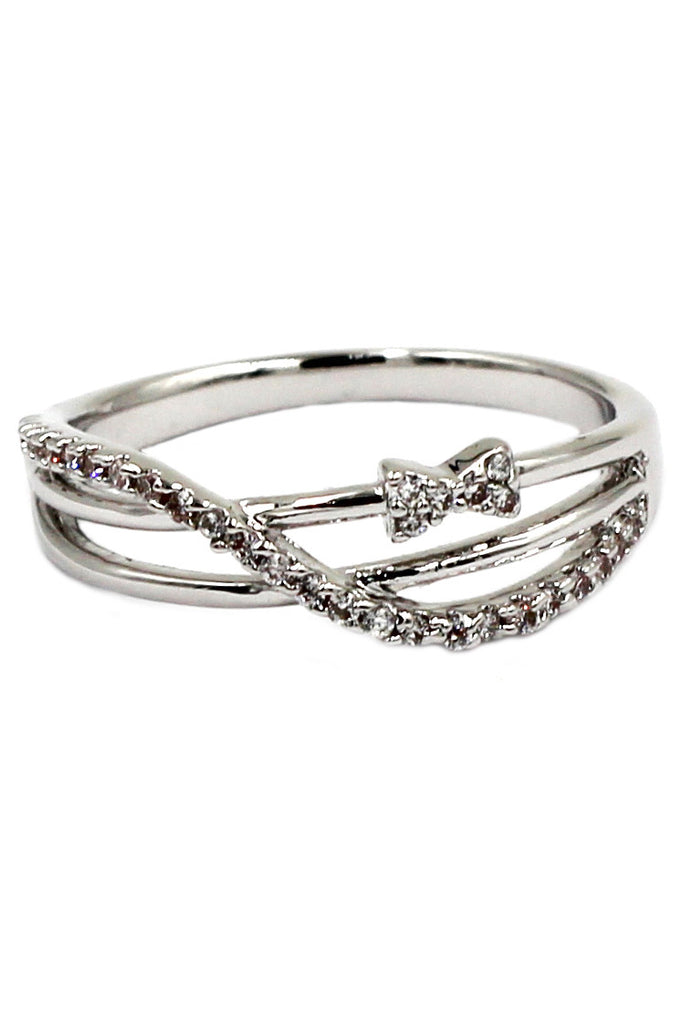 lovely mini bow crystal silver ring