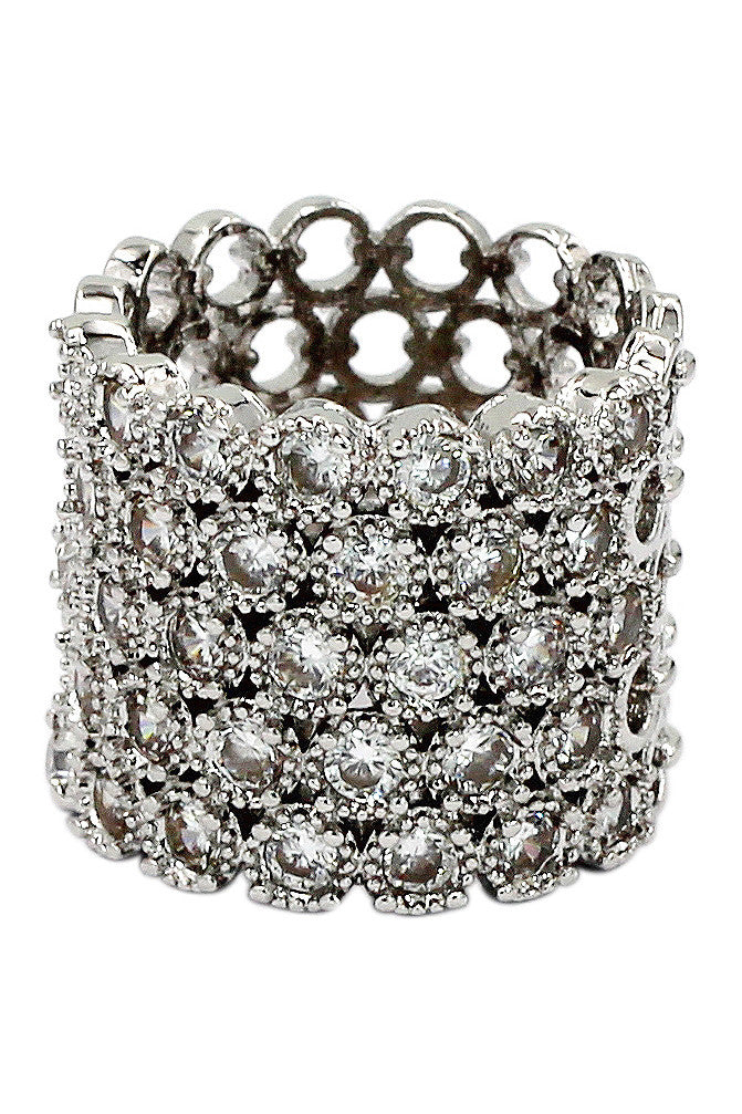 luxury multi-row crystal silver ring