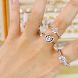 fashion crystal crown open silver ring