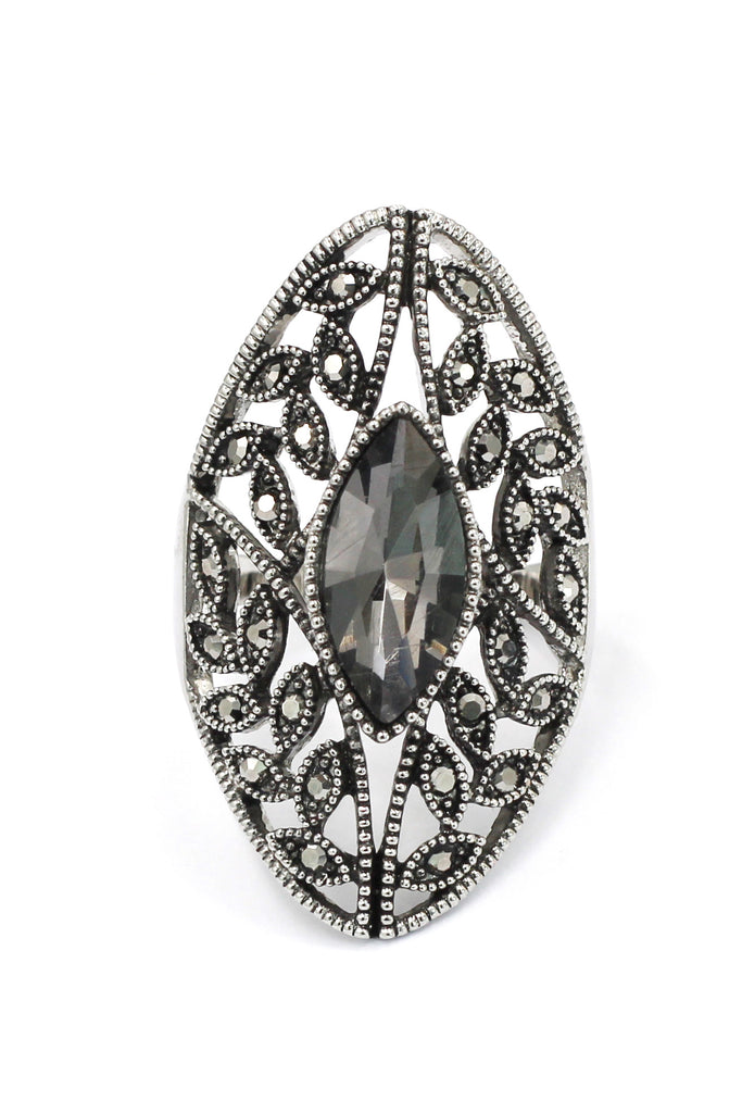 noble black crystal silver ring