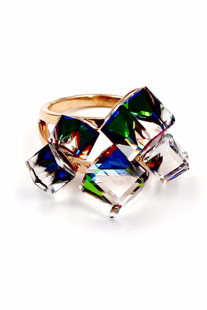 Noble Square Crystal Gold Ring