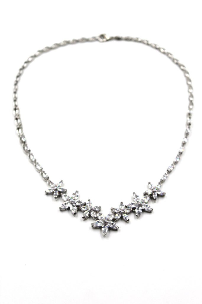 silver crystal flower necklace