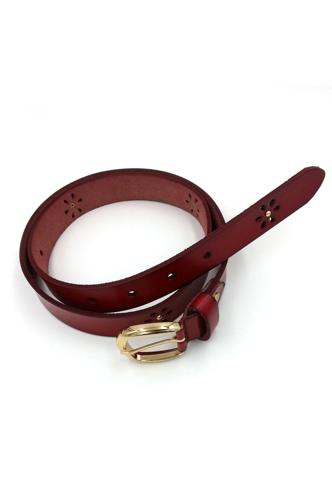 Brown Flower Leather Belt