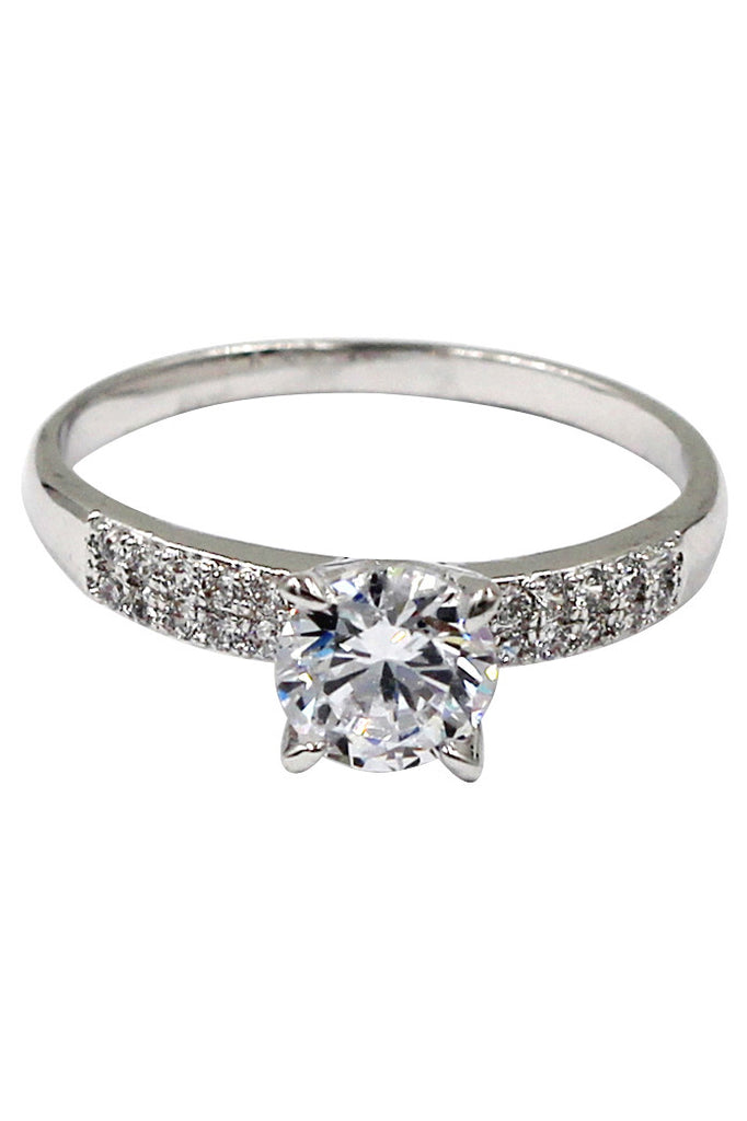 Elegant crystal cross silver ring