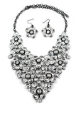 Wild silver crystal cross earrings necklace set