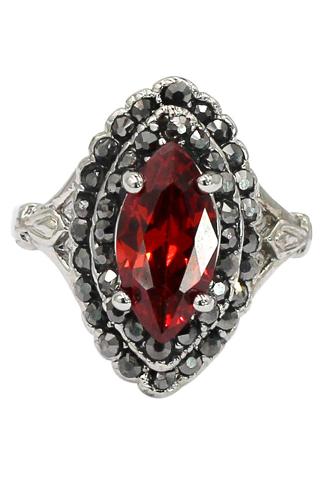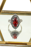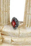 current red crystal silver ring