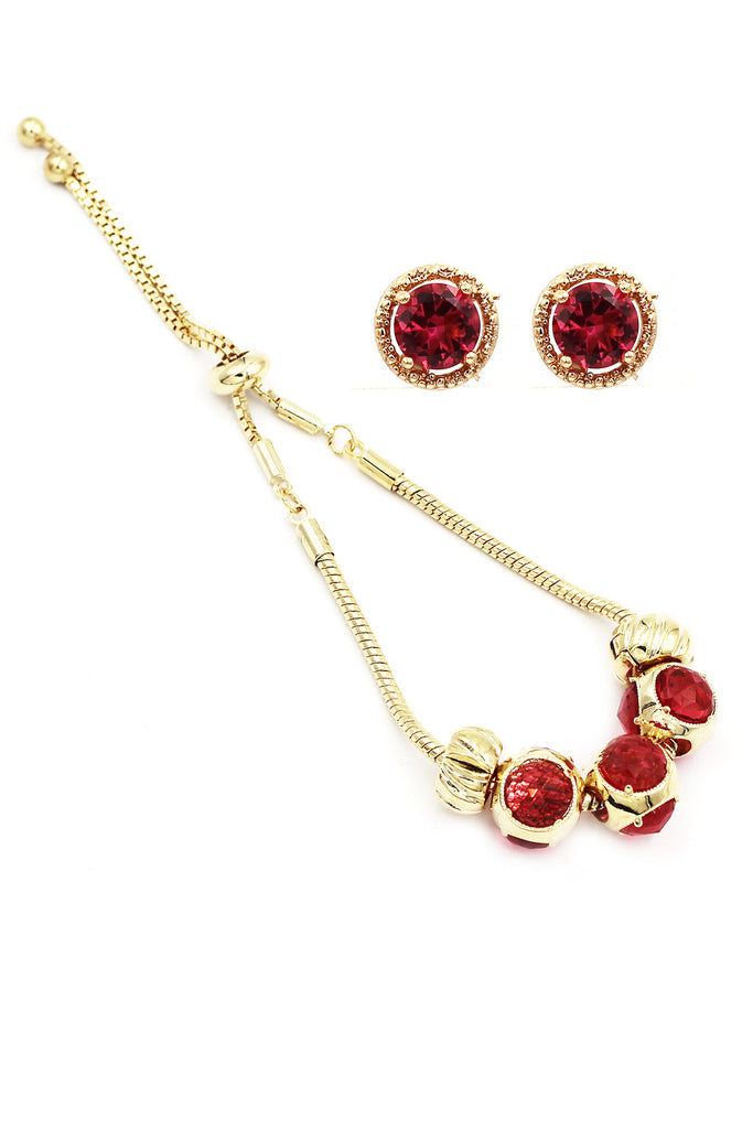 fashion red crystal bracelet earring set