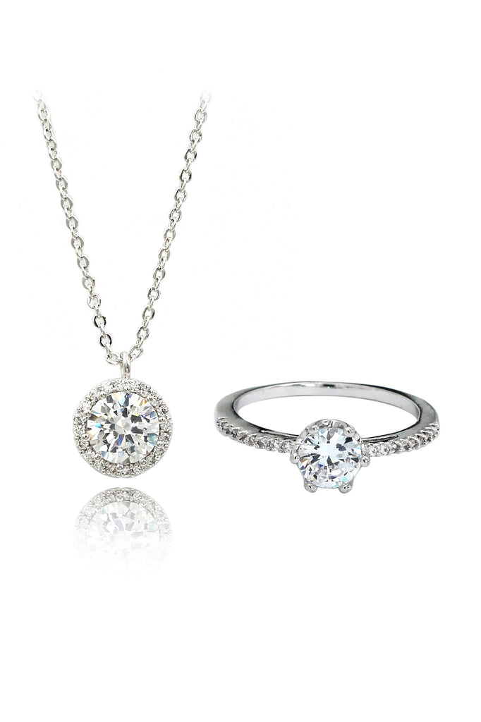 fashion small crystal ring necklace set
