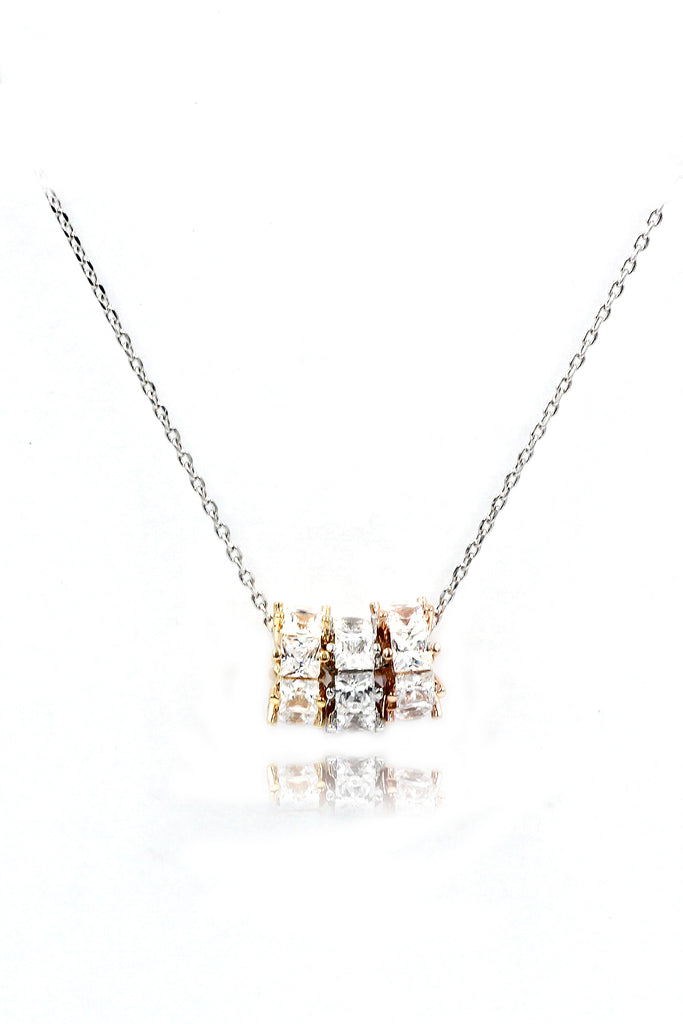 elegant square crystal pendant silver necklace
