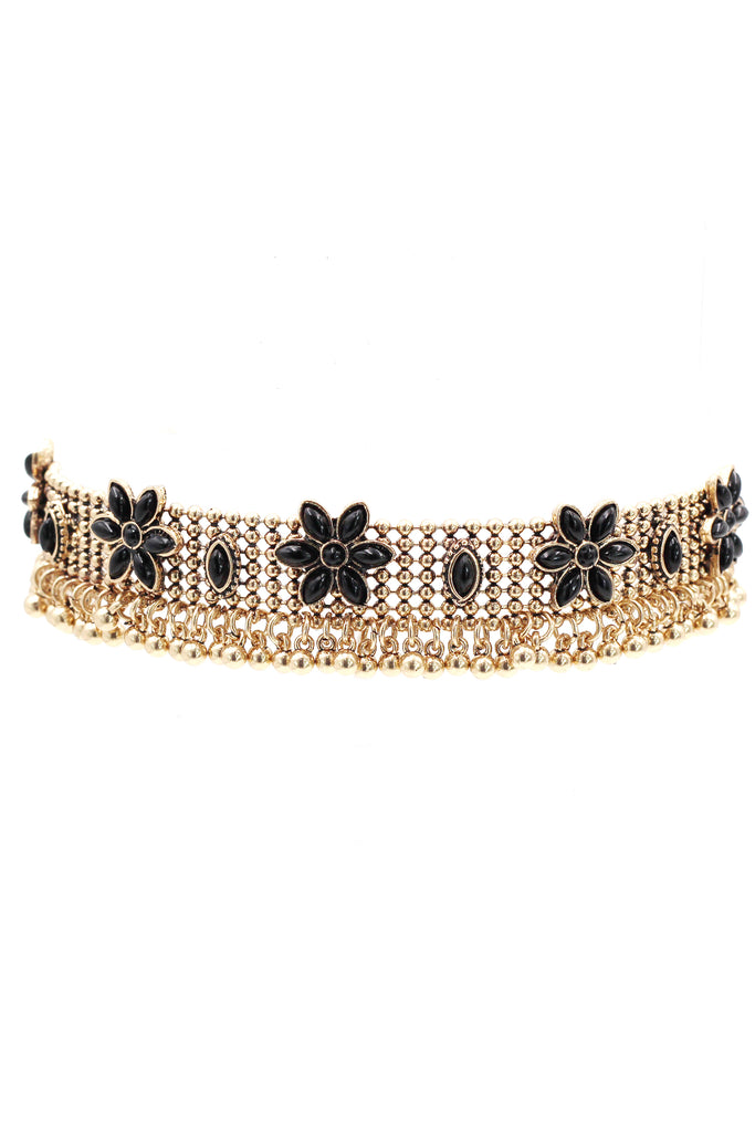 retro crystal flower beads choker